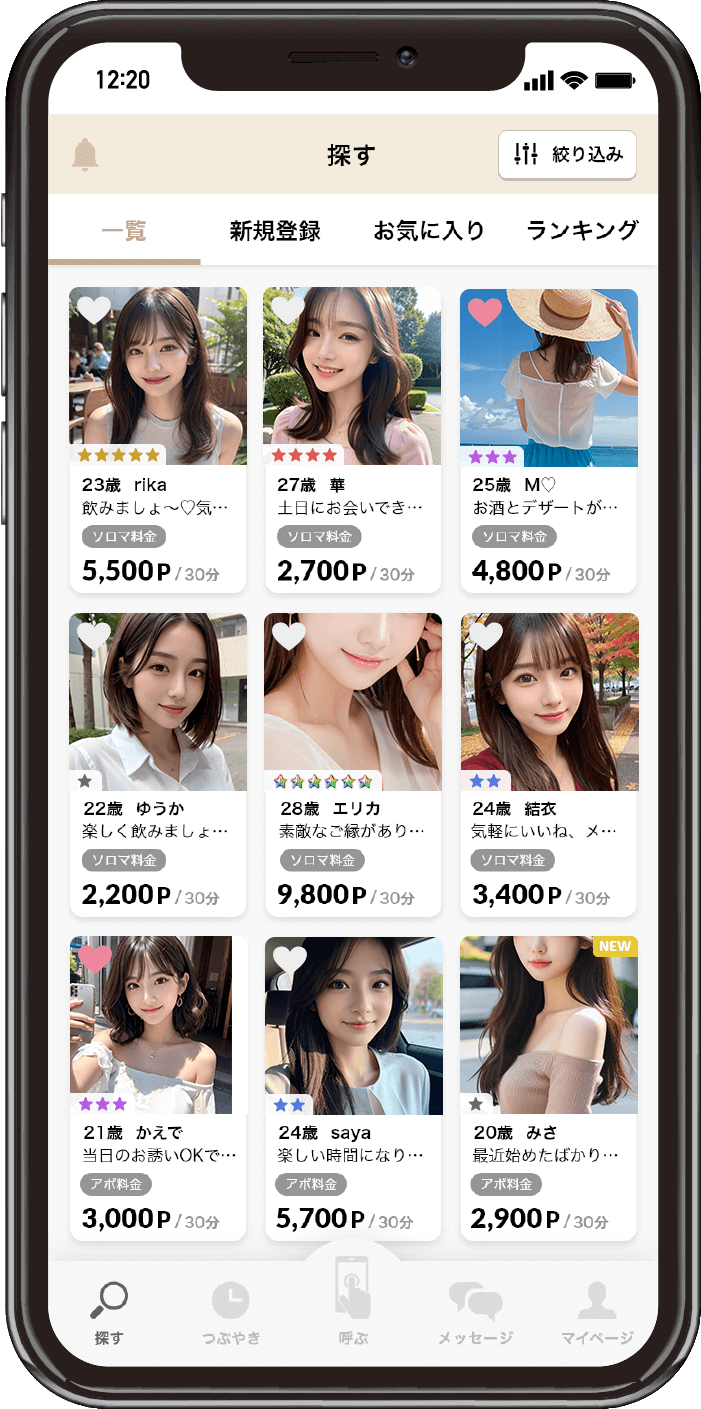 月額料金なし、会うまで料金が掛からないので、自分のペースで会いたい子を見つけてもらうことが出来ます。