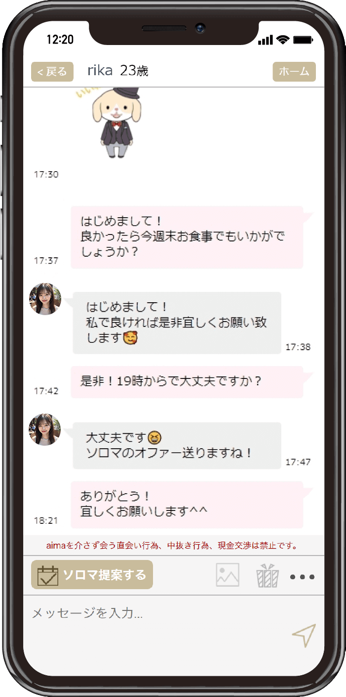 aimaでは会うまで料金が掛からない仕様となっているので、サクラや業者が入る意味がない環境となっております。